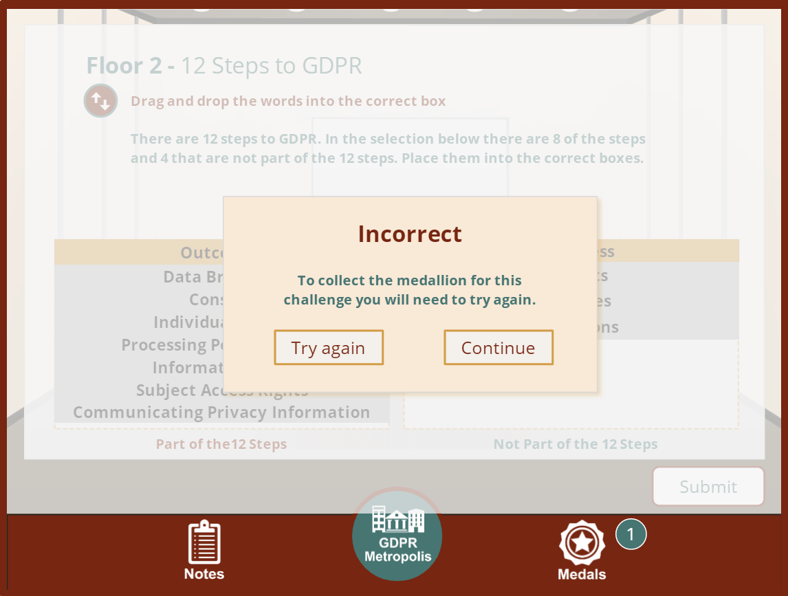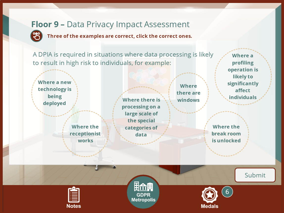 You can incorporate gamification in many ways and at different levels and it can be as simple as providing badges, medals, points or certificates, all the way through to scenario-based gamification where the learner is actively involved within “stories”, answering questions, solving puzzles and addressing various challenges.