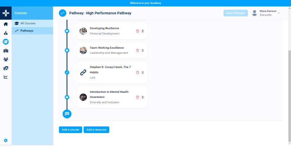 Easy creation and setup of learner programmes and pathways