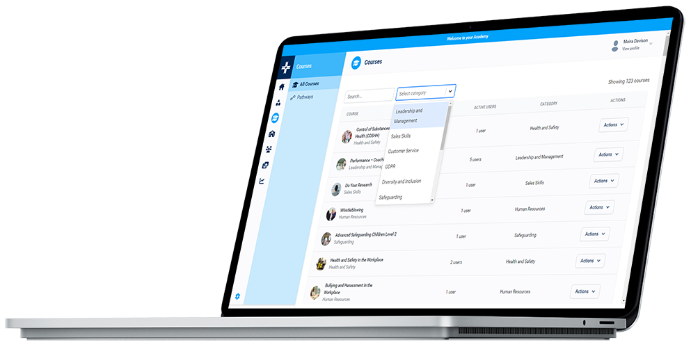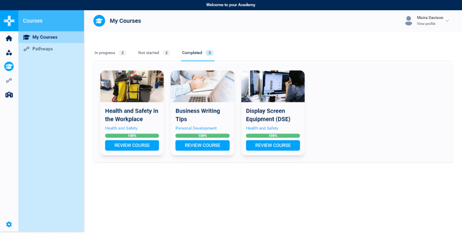 An inbuilt course catalogue of 100 CPD certified compliance and upskilling courses, plus the H&S and Wellbeing collections.